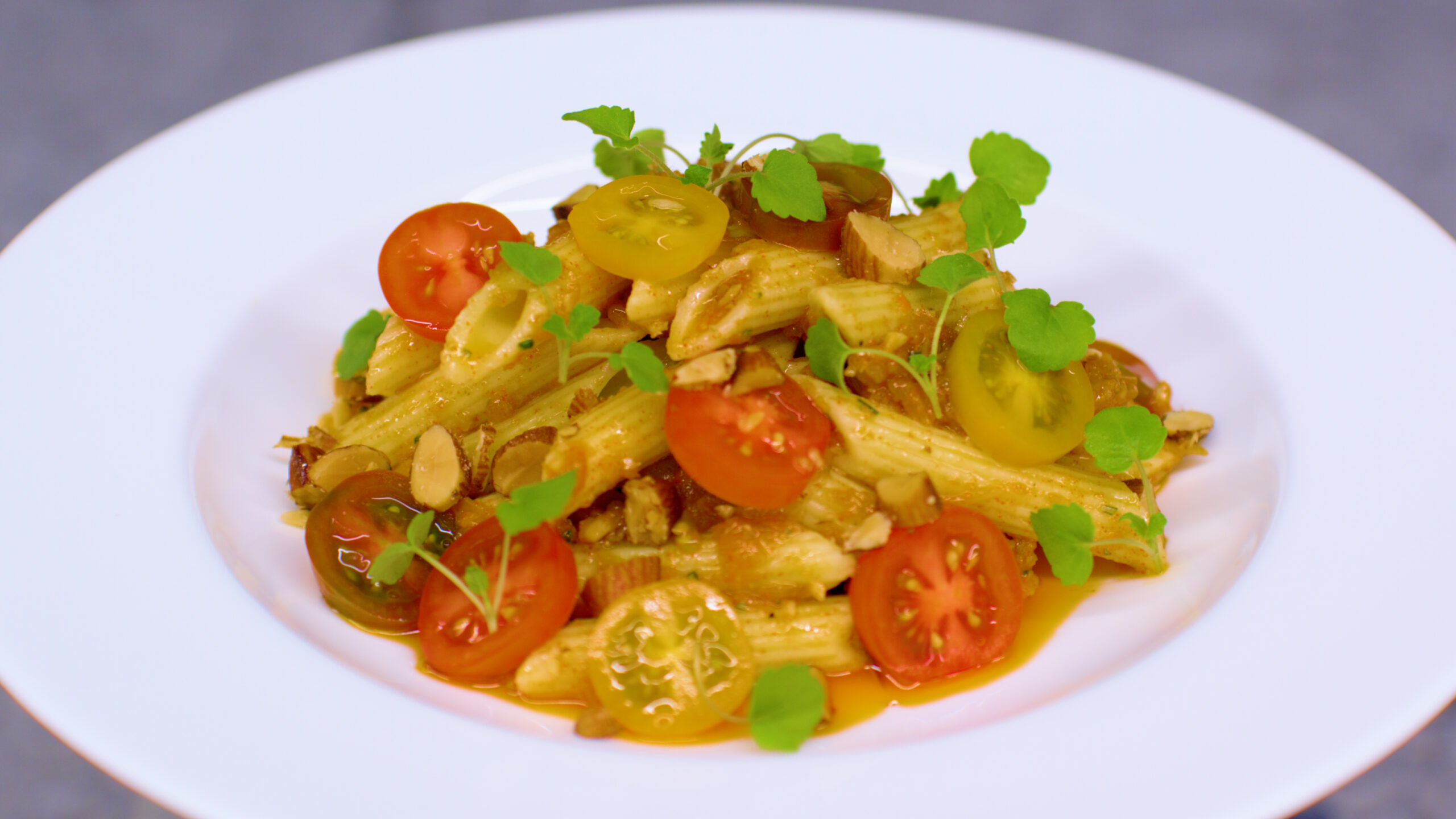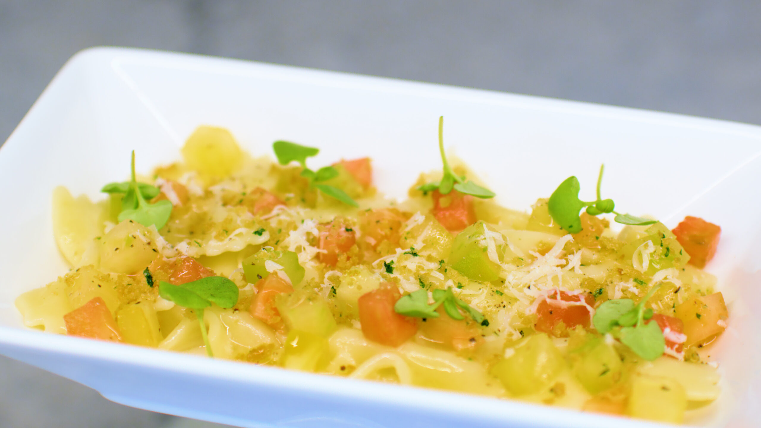 This menu highlights three of our partners: Barilla is the manufacturer of finest Italian pasta, including the new Al Bronzo series with durum wheat and high-quality proteins. Cuisine Solutions are specialists in perfectly cooked proteins, sauces and vegetables. NotCo delivers the taste of animal products without using animal products. Sustainable and delicious.